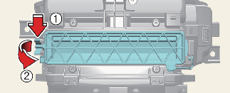 Remove the cover by pulling the upper part of the cover. Remove the climate control air filter case (2) by pulling out left side of the cover (1).