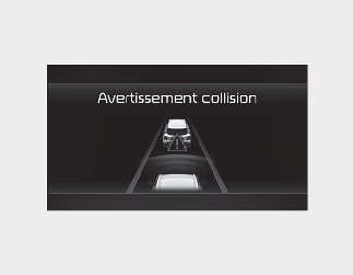 Pour alerter le conducteur d'une collision, le message d'avertissement ‘Collision Warning (avertissement de collision)’ apparaîtra dans le combiné d’instruments, un signal sonore retentira et le volant se mettra à vibrer.