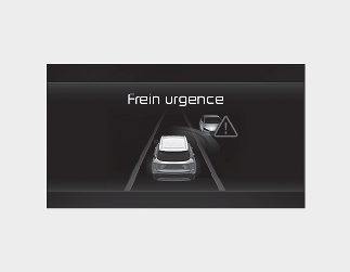 Pour alerter le conducteur que le freinage d’urgence peut s’enclencher, le message d'avertissement ‘Emergency Braking (freinage d'urgence)’ apparaîtra dans le combiné d’instruments, un signal sonore retentira et le volant se mettra à vibrer.