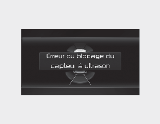 Le message « Camera error or blockage » (Erreur ou blocage de la caméra) ou « Ultrasonic sensor error or blockage » (Erreur ou blocage du capteur à ultrasons) apparaîtra sur le combiné d’instruments si les situations suivantes se produisent :
