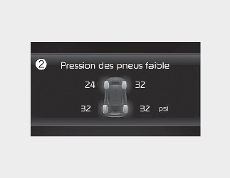 Témoin de basse pression des pneus (indiqué sur l’écran LCD)