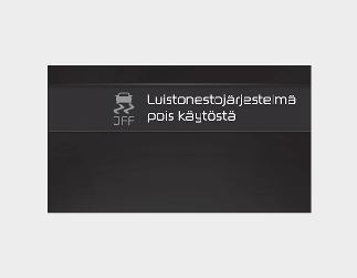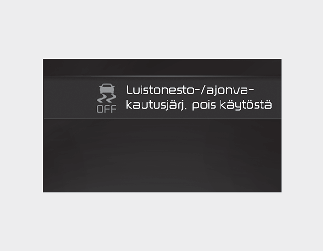 ) tulee näkyviin ja kuuluu ESC OFF -varoitusääni. Tässä tilassa auton vakaudensäätö ei toimi enää.