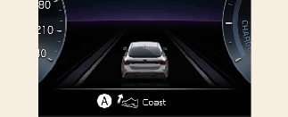 Es ertönt ein akustisches Signal, die Anzeige des Leerlaufassistenten erscheint und weist den Fahrer darauf hin, wann er den Fuß vom Gaspedal nehmen sollte, wenn aufgrund der Analyse von Fahrstrecken und Straßenverhältnissen der im Navigationssystem gespeicherten Route ein Abbremsereignis* bevorsteht. So wird der Fahrer dazu angehalten, den Fuß vom Gaspedal zu nehmen und im Leerlauf nur mit dem Elektromotor zu fahren. Dies vermeidet unnötigen Kraftstoffverbrauchs bei und steigert die Effizienz. * Beispiele für Abbremsereignisse sind längere Fahrten auf abschüssigen Strecken, Abbremsen vor einer Mautstation und das Einfahren in Zonen mit Geschwindigkeitsbegrenzungen.