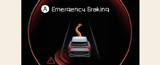 Wenn das Fahrzeug aufgrund einer Notbremsung angehalten wurde, erscheint die Warnmeldung auf dem Kombiinstrument. Zur Sicherheit sollte der Fahrer sofort das Bremspedal betätigen und die Umgebung prüfen.