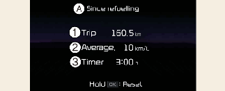 Aby ręcznie zresetować informacje, nacisnąć i przytrzymać przycisk OK na kierownicy w trakcie wyświetlania informacji od zatankowania.