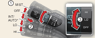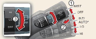 INT/AUTO*: Przerywana regulacja wycieraczek / automatyczna regulacja wycieraczek