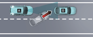 [A]: pojazd użytkownika, [B]: pojazd poprzedzający