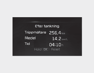 Om du trycker på "OK"-knappen i mer än 1 sekund efter att informationen sedan tankning visas kommer informationen att återställas.