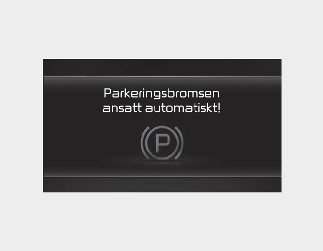 Om du försöker att trycka ner gaspedalen och köra iväg med EPB aktiverad, utan att den lossas automatiskt, hörs en varningssignal och ett meddelande visas.