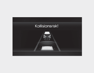 Varningsmeddelandet “Kollisionsvarning” kommer att visas på instrumentpanelen, en ljudsignal kommer att genereras och ratten kommer att vibrera (i förekommande fall) för att varna föraren om en kollision.