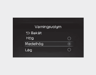 Om du ändrar varningsvolymen, kan varningsvolymen ändras även för andra förarassistansfunktioner.