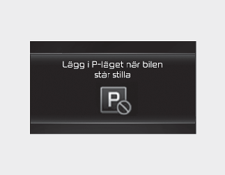 Meddelandet visas på LCD-skärmen när växeln placeras i P-läge (parkering) medan fordonet körs.