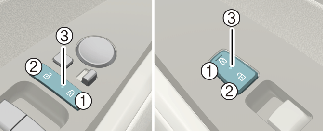 Lorsque toutes les portes du véhicule sont verrouillées, les témoins lumineux (3) sur la porte du conducteur et la porte du passager s'allument. Si une porte est déverrouillée, le témoin s'éteint.