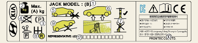 * L'étiquette du cric de votre véhicule peut différer de celle présentée dans l'illustration. Pour obtenir des spécifications détaillées, reportez-vous à l'étiquette de votre cric.