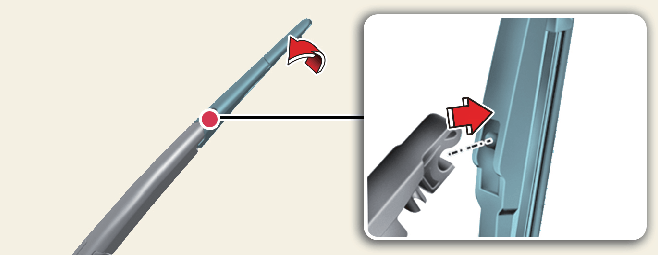 Quand le remplacement est terminé, reposez le balai d'essuie-glace sur la lunette arrière, démarrez le véhicule et actionnez les essuie-glace pour confirmer la bonne installation du balai.