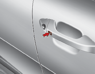 Pressing the button of the front outside door handles with all doors (and tailgate) closed and any door unlocked, locks all the doors (and tailgate). If all doors (and tailgate) and engine bonnet are closed, the hazard warning lights will blink once to indicate that all doors (and tailgate) are locked.
