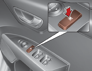When the power window lock button is in the LOCK position (pressed), the driver’s master control can operate all power windows. Also, the front passenger’s control can operate the front passenger’s power window.
