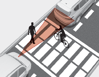 When a pedestrian or bicycle is between you and the vehicle ahead