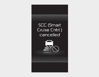 If the function is temporarily cancelled, the 'Smart Cruise Control cancelled' (or 'SCC (Smart Cruise Cntrl.) cancelled') warning message will appear on the cluster, and an audible warning will sound to warn the driver.
