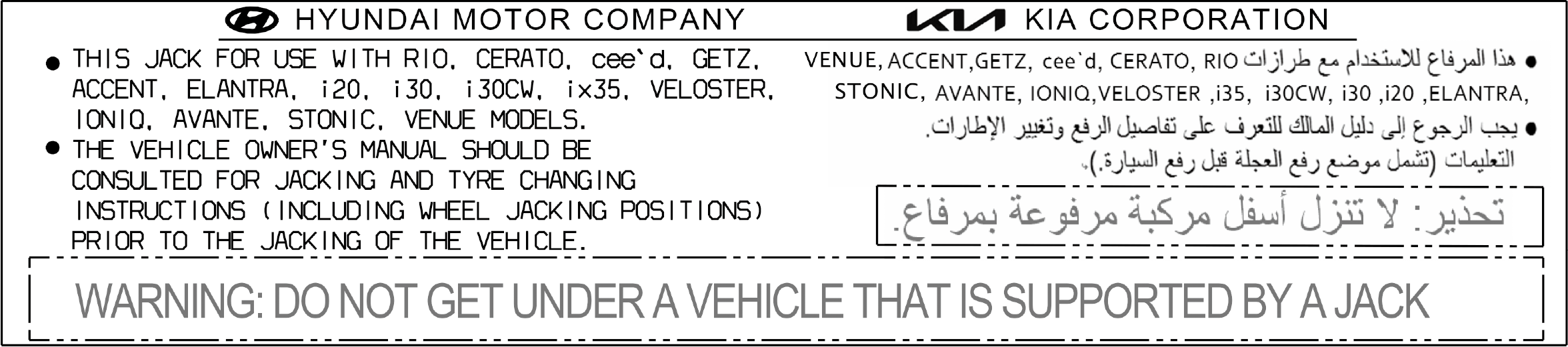 * The actual Jack label in the vehicle may differ from the illustration. For more detailed specifications, refer to the label attached to the jack.