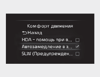 При неисправности интеллектуальной системы круиз-контроля с навигацией функцию не удастся настроить в меню Settings (Настройки).