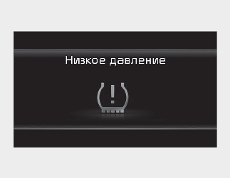 Если загораются индикаторы системы контроля давления в шинах, а на ЖК-дисплей комбинации приборов выводится предупреждающее сообщение, то в одной или нескольких шинах отмечается значительное падение давления. Сигнал низкого давления в шине указывает, в какой именно шине отмечается значительное падение давления.