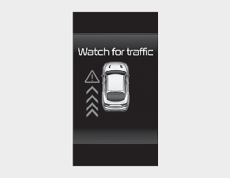 Wenn ein sich von hinten näherndes Fahrzeug in dem Moment erkannt wird, in dem eine Tür geöffnet wird, erscheint die Warnmeldung „Watch for traffic“ (Auf Verkehr achten) auf dem Kombiinstrument, und es wird ein Warnton ausgegeben.