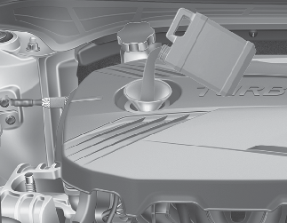 After removing the engine cover, fill up the engine oil. (For Smartstream G1.0 T-GDi, Smartstream G1.0 T-GDi MHEV, Smartstream G1.5 T-GDi, Smartstream G1.5 T-GDi MHEV)