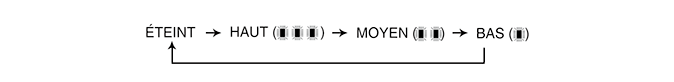 À chaque fois que vous appuyez sur le commutateur, le réglage de la température du siège est modifié comme suit :