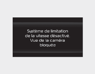 Dans ce cas, le message « Speed limit system disabled. Camera obscured » (Avertissement d’attention du conducteur désactivé. Caméra obstruée) apparaîtra dans le combiné d'instruments. L'avertissement de la limitation intelligente de vitesse fonctionne correctement lorsque la neige, la pluie ou les corps étrangers sont enlevés.