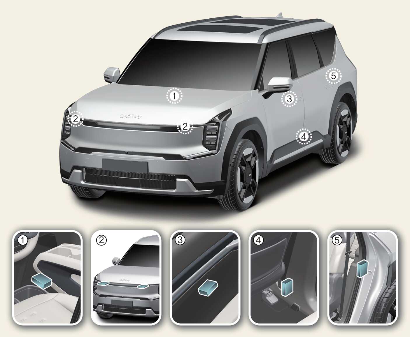 Poderão ocorrer problemas se os ângulos de instalação dos sensores forem alterados devido a uma deformação do para-choques dianteiro, da carroçaria ou do pilar B onde os sensores de colisão lateral estão instalados. Neste caso, mande fazer a manutenção do sistema numa oficina profissional. A Kia recomenda que visite um concessionário/parceiro de serviços Kia autorizado.