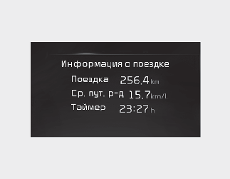 В режиме маршрутного компьютера отображается информация, связанная с параметрами движения автомобиля, включая расход топлива, показания одометра и таймера.