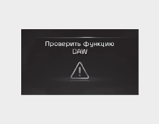 Если система контроля внимания водителя работает неправильно, на приборной панели появится предупреждающее сообщение «Check Driver Attention Warning (DAW) system» (Проверьте систему контроля внимания водителя). Следует проверить автомобиль в специализированной мастерской. Kia рекомендует обратиться к официальному дилеру Kia или партнерской сервисной компании.