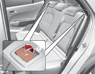 When folding the seat back, insert the rear seat belt buckle in the pocket between the rear seatback and cushion then make sure both seatbelts do not interfere with stowed luggage and cargo. Then, insert the seat belt into the two holes located on both sides.