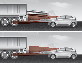 If the vehicle in front of you has cargo that extends rearward from the cab, or when the vehicle in front of you has higher ground clearance, additional special attention is required. Forward Collision-Avoidance Assist may not be able to detect the cargo extending from the vehicle. In these instances, you must maintain a safe braking distance from the rearmost object, and if necessary, steer your vehicle and depress the brake pedal to reduce your driving speed in order to maintain distance.