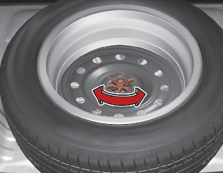 2. Turn the tire hold-down wing bolt counterclockwise with the jack handle.