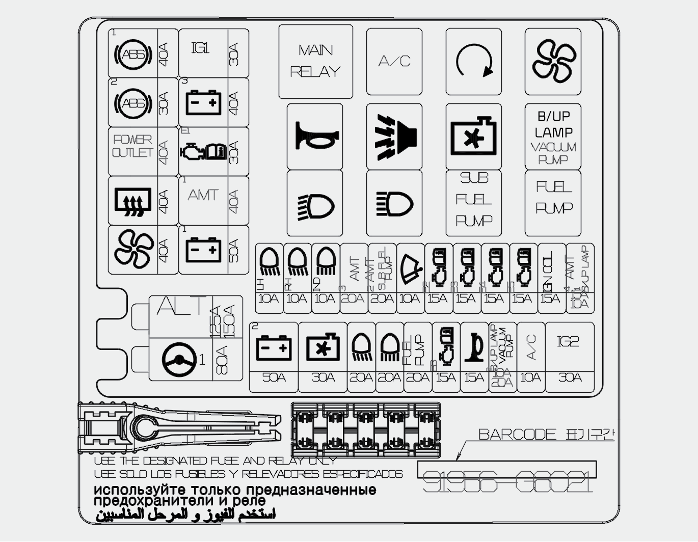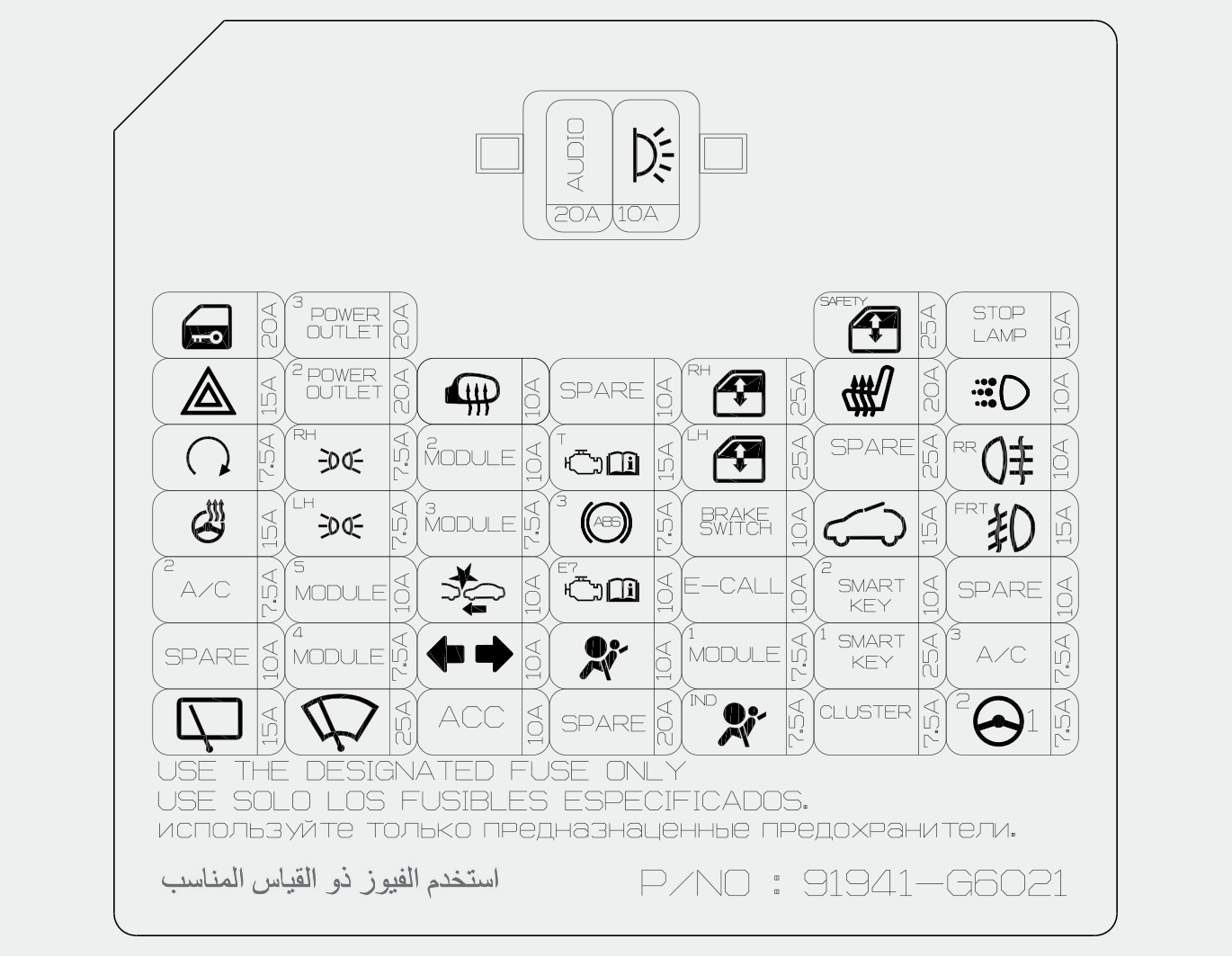 Inside the fuse/relay panel covers, you can find the fuse/relay label describing fuse/relay name and capacity.