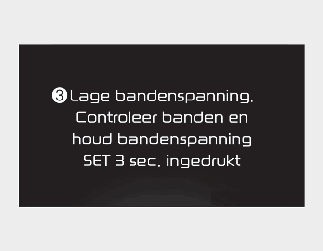 Daarna brandt het lampje voor lage bandenspanning als een of meer banden een te lage bandenspanning hebben en wordt een melding op het scherm weergegeven.