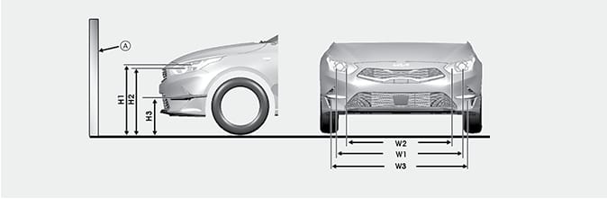 * Als afstelling vereist is, pas het richtpunt dan aan na de meting van de grondspeling van een voertuig. Kia raadt aan om een officiële Kia-dealer/servicepartner te bezoeken. Dit is omdat het kan verschillen van de werkelijke grondspeling van een voertuig.