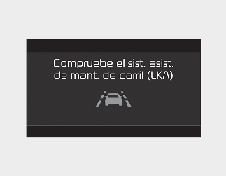 Cuando la asistencia de mantenimiento de carril no funciona correctamente, aparece el mensaje de advertencia "Compruebe el sist. asist. de mant. de carril (LKA)" y el testigo indicador amarillo ( o ) se encenderá en el tablero. Si ocurre esto, solicite la comprobación de la función en un taller profesional. Kia recomienda visitar un centro de servicio/distribuidor Kia autorizado.