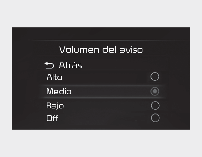 Si modifica el volumen del aviso, es posible que cambie el volumen del aviso de otro sistema de asistencia al conductor.