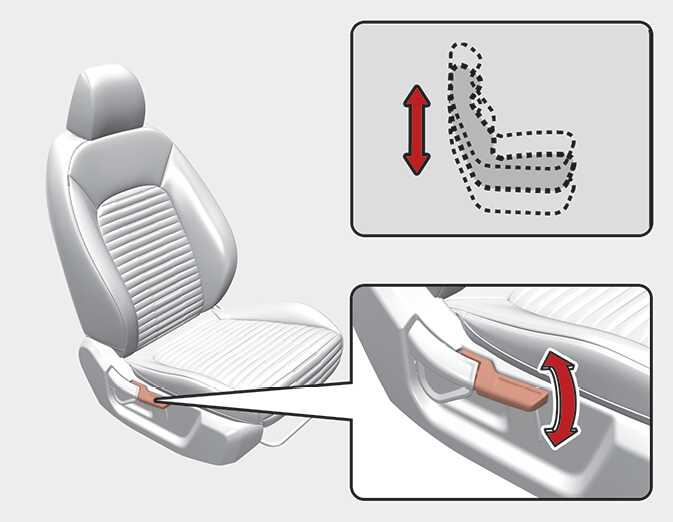 To change the height of the seat cushion, push the lever upwards or downwards.