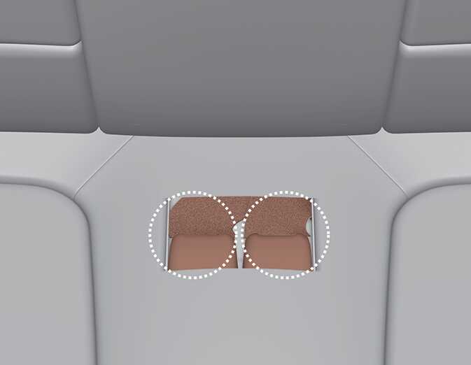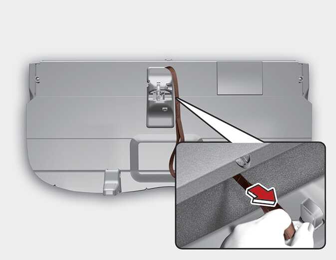 OQYi030052RThen, insert the rear seat belt webbing in the guide located on both sides of 2nd and 3rd row, and insert the metal tab into the hole.