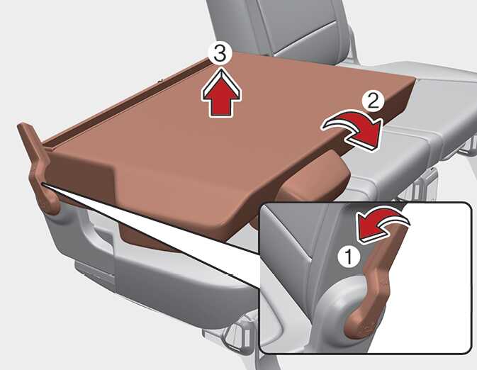 Back of the seatback will slightly go up (3), then lift up the 2nd row seat and set to upright position (vertical position).