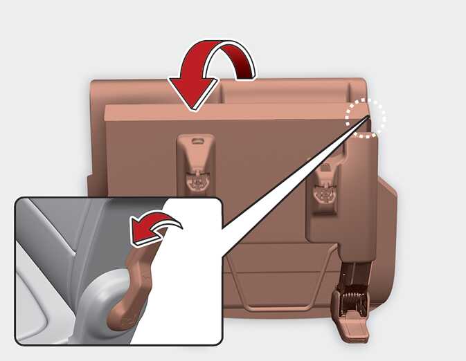 Lift and pull the seatback backward and be careful not to be located the seat belt between the rear seat and vehicle body. Pull the seatback firmly until it clicks into place.