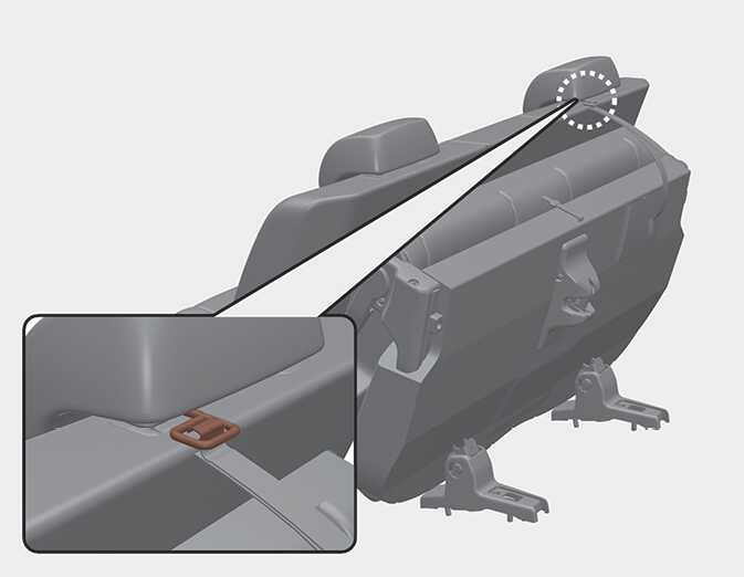 When you fold the rear seatback, insert the buckle in the pocket between the rear seatback and cushion. Doing so can prevent the buckle from being damaged by the rear seatback.