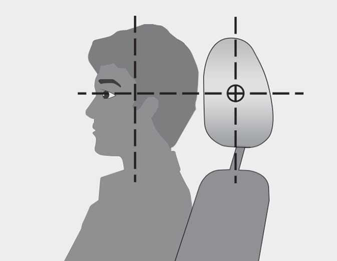 For maximum effectiveness in case of an accident, the headrest should be adjusted so the middle of the headrest is at the same height as the centre of gravity of an occupant's head. Generally, the centre of gravity of most people's head is similar with the height of the top of their eyes. Also adjust the headrest as close to your head as possible. For this reason, the use of a cushion that holds the body away from the seatback is not recommended.