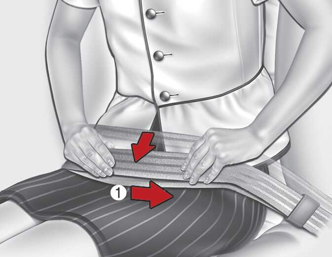 The belt should be placed as low as possible on your hips (1), not on your waist. If the belt is too high, it could increase the possibility of your being injured in an accident.