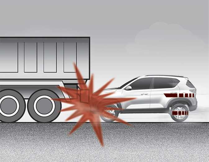 Just before impact, drivers often brake heavily. Such heavy braking lowers the front portion of the vehicle causing it to "ride" under a vehicle with a higher ground clearance. Air bags may not inflate in this "under-ride" situation because deceleration forces that are detected by sensor may be significantly reduced by such "under-ride" collisions.