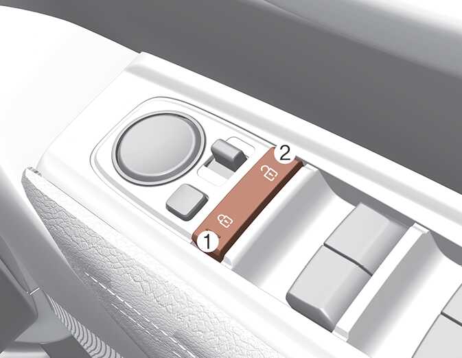 To lock all vehicle doors, press the left portion (1) for driver side of the switch.